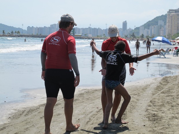 A mãe do menino levou Raphael para a Escola Radical, em Santos, a primeira pública de surfe no país, coordenada por Cisco.