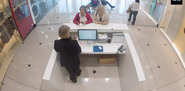 A equipe que produziu o teste deixa um par de óculos no chão e espera para ver a reação dos clientes.