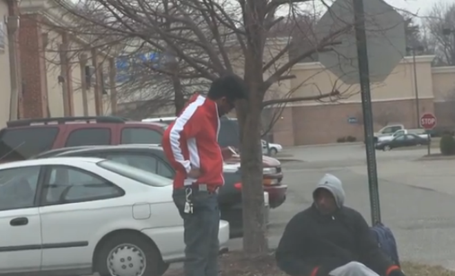 O vídeo de um sem teto que ganha um falso cartão premiado da loteria está comovendo os internautas.