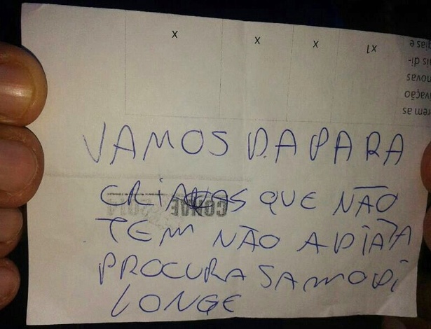 É difícil entender, mas o bilhete deixado pelos ladrões, que invadiram 2a. Feira uma escola – o Centro Municipal de Educação Infantil Malvina Poppi Pedrialli, em Londrina, Paraná – diz: “vamos dar para crianças que não tem. Não adianta procurar, somos de longe”.