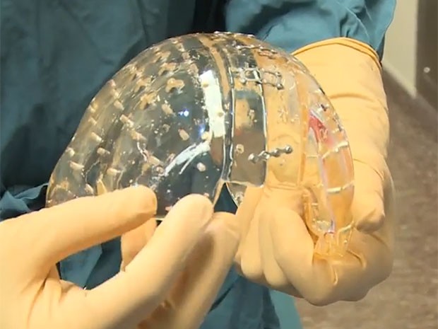 As próteses criadas em impressoras 3D já haviam sido usadas para substituir partes do crânio, mas esta é a primeira vez que quase toda a caixa craniana é substituída em um paciente.