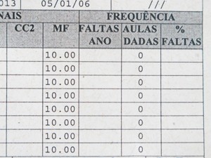 Acima, o boletim com as médias de Fernanda