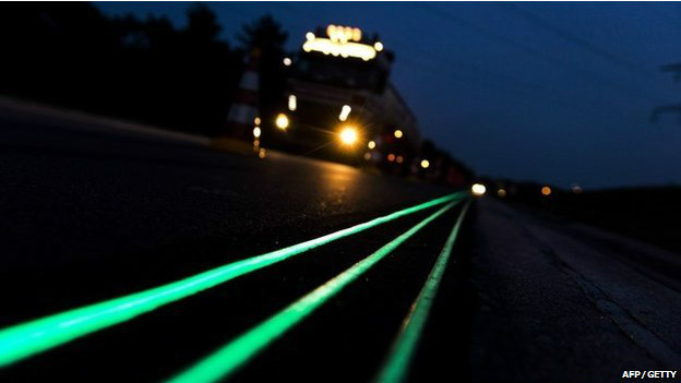 Estrada ganha faixas verdes que brilham no escuro: sustentável