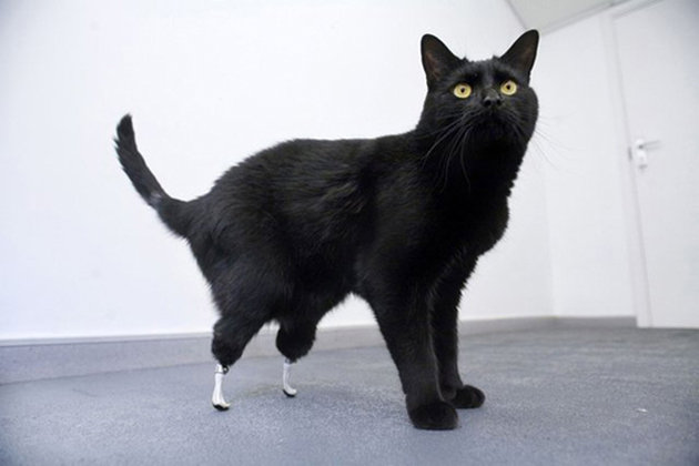 O gato Oscar (foto acima) teve as patas traseiras decepadas por uma colheitadeira, e agora nem precisa usar uma cadeira de rodas para se locomover. O corajoso gato de 2 anos pôde voltar a andar depois de ser equipado com próteses em uma operação de primeiro mundo.