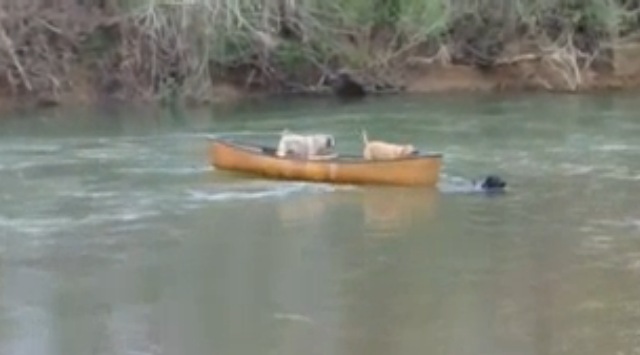 Labrador pula em rio e salva cães presos em barco desgovernado