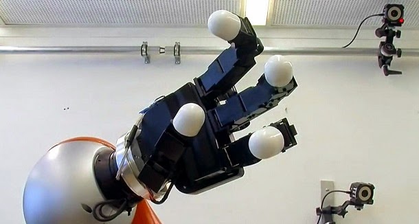 Cientistas desenvolveram um braço biônico que pega objetos no ar.