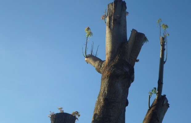 E deu certo: os primeiros brotos começaram a nascer na paineira, que tem 15 metros de altura e pesa 30 toneladas.
