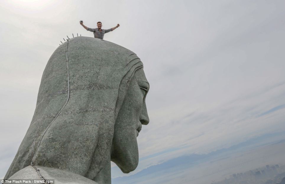 Ele conseguiu convencer o conselho de turismo brasileiro para deixá-lo subir na estátua e fazer a foto que virou notícia.