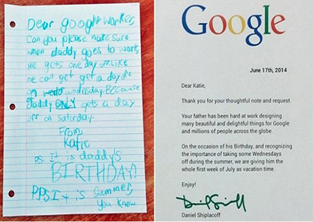 Mas trabalhar implica em ausência e a filha de um funcionário do Google mostrou que para ela a presença do pai é muito importante.