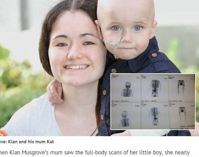 O pequeno Kian Musgrove foi diagnosticado com 27 tumores pelo corpo, quando tinha 1 ano e seis meses.