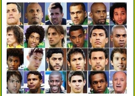 #JulioCésar, #Jefferson, #Victor, Dani Alves, #Maicon, Marcelo M12, Maxwell Scherrer, #ThiagoSilva, David Luiz, Dante Bonfim, #Henrique, Luiz Gustavo Dias, Paulinho 8, #Fernandinho, Willian, Ramires, Hernanes, Oscar dos Santos Emboaba Júnior, Bernard_Oficial, #Hulk, Fred #9 – Oficial, Jô e Professor Felipão !!