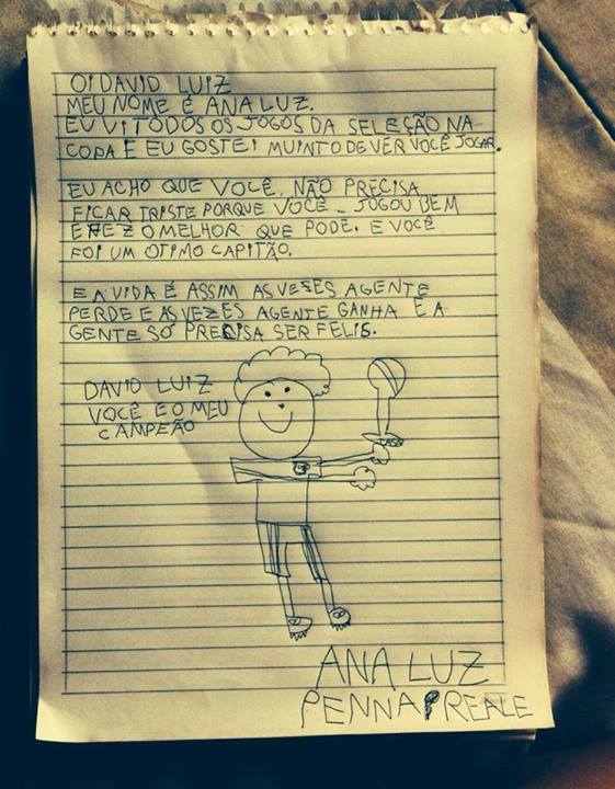 O choro de David Luiz, após a derrota sofrida de 7 a 1 para a Alemanha, na última terça-feira, deixou a pequena Ana Luz, de 9 anos, sentida.
