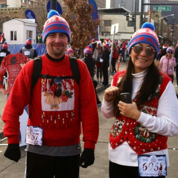 A primeira prova disputada pelo casal foi de cinco quilômetros.