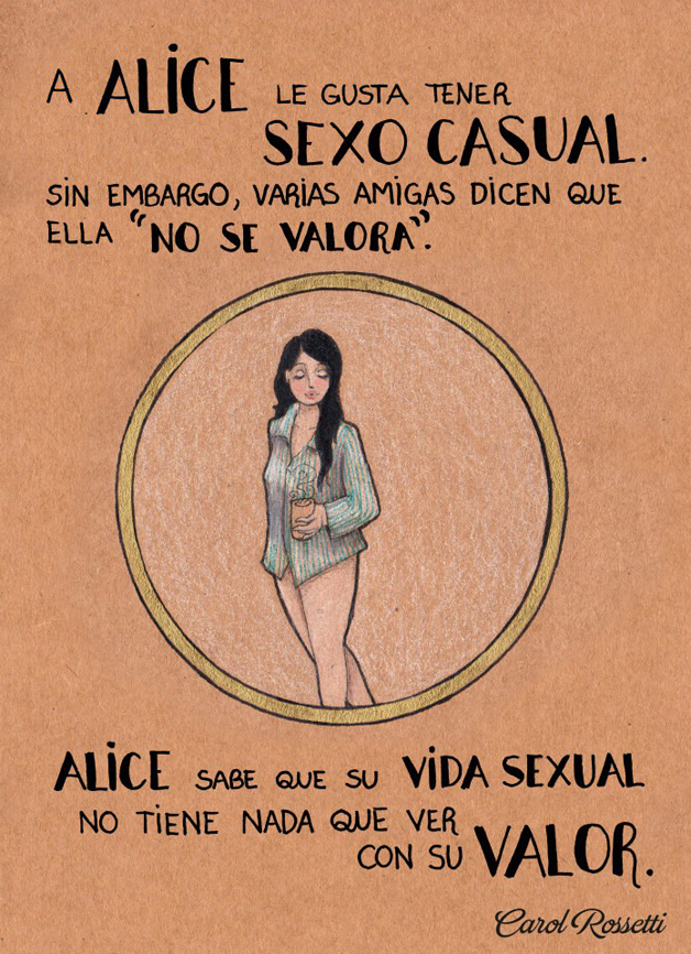 “Alice gosta de ter sexo casual, porém suas amigas dizem que ela ‘não se valoriza’”; “Alice sabe que sua vida sexual não tem nada a ver com seu valor”.