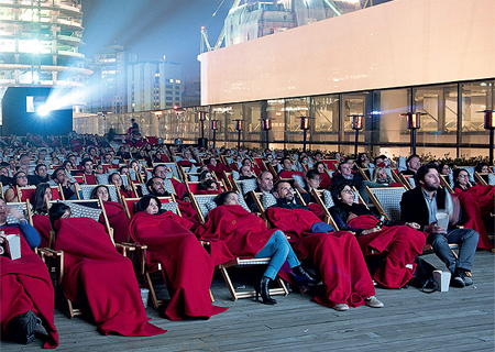 Faça frio, faça calor a sessão de cinema ao ar livre é um sucesso.