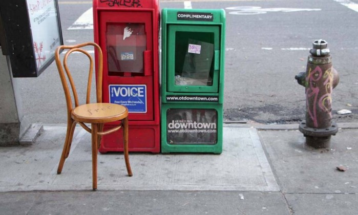 Em Nova York, assim como em todo os Estados Unidos — e outros países como Canadá e países da Europa — é comum que as pessoas deixem, nas calçadas, mobílias que não querem mais, velhas ou não, quebradas ou não.