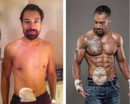 Fisiculturista posa com bolsa de colostomia