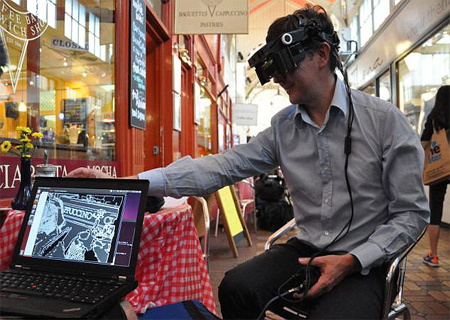 Os óculos inteligentes têm uma câmara de vídeo montada na armação dos óculos; uma unidade de processamento de computador que cabe num bolso e o software que fornece imagens de objetos próximo ao local para para se enxergar por meio dos óculos.