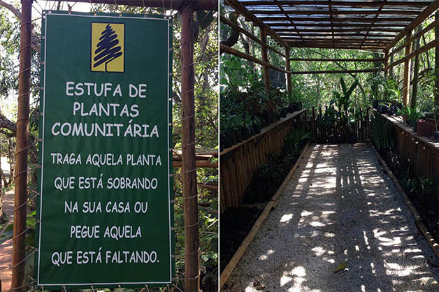 Tem também a estufa coletiva, onde as pessoas deixam e pegam mudas de plantas, e uma biblioteca do condomínio, que de tanto sucesso ganhou acervo também de revistas e DVDs.