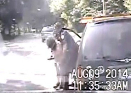 A mulher imediatamente abraçou o oficial, agradecida, e começou a chorar.