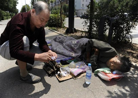 Até que o médico aposentado, Wang Falin, de 80 anos, passou, viu a situação e começou a cuidar dele.