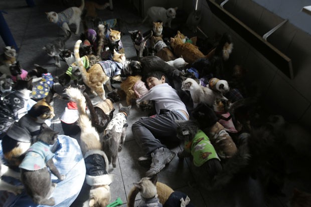 Todos os animais ganham um nome e muitos são vestidos com pequenas camisetas.