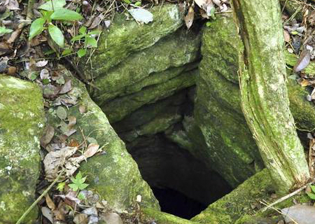 foto: Câmara subterrânea para coletar a água da chuva, nas ruínas de uma cidade maia em Tamchen