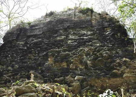 As fotografias dos lugares (veja abaixo) mostram pirâmides de pedra que se sobressaem na densa folhagem.