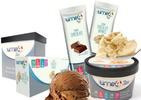 Uma das marcas mais conhecidas nessa linha é a Time4 Ice Cream vem nos sabores: chocolate, baunilha, café mocha e chocolate branco.