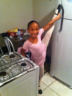 “No começo, ela não conseguia fazer o espacate. Aí a coleguinha tirou onda dela. Eu falava para ela treinar bastante, porque só faltava isso. Ela treinava em casa todo dia, no balé e ficou perfeito”, recorda a mãe.