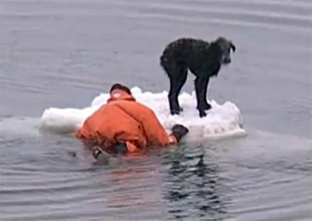 O cachorro se equilibrando num pequeno bloco de neve à deriva, outro se afogando num rio de lixo, outro que caiu em um buraco, um gatinho que não consegue sair de uma marquise… Todos foram salvos.