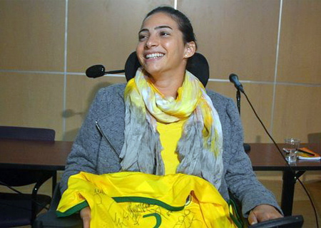 Durante a entrevista Lais ganhou uma camisa da seleção brasileira, entregue pelo coordenador de seleções da CBF, Gilmar Rinaldi. (foto acima)