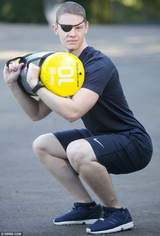 Com a ajuda de um tapa-olho ele superou sua falta de equilíbrio e embarcou em seu sonho de ser instrutor de fitness, um personal-trainer.