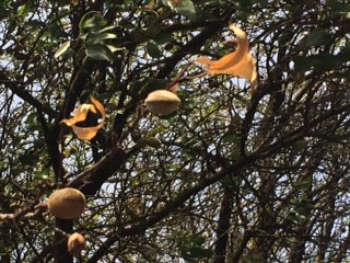 Fruta caríssima no Brasil, aqui estraga e mancha o chão de roxo.