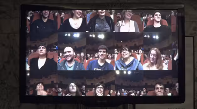 No final da apresentação, você pode ver as imagens de cada risada, contabilizá-las e até mesmo compartilhá-las nas redes sociais.