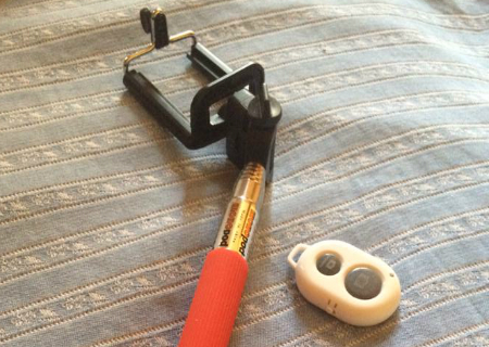 Eles estão usando o “MonoPod”, ou “pau de selfie”, um aparelho que permite afastar o smartphone do corpo para bater a foto.