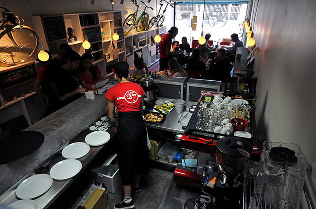 O bar tem ainda café da manhã e almoço, serviços de sua oficina especializada e uma loja para poder comprar bicicletas ou acessórios.