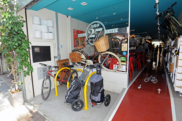 Café para ciclistas: ducha e estacionamento