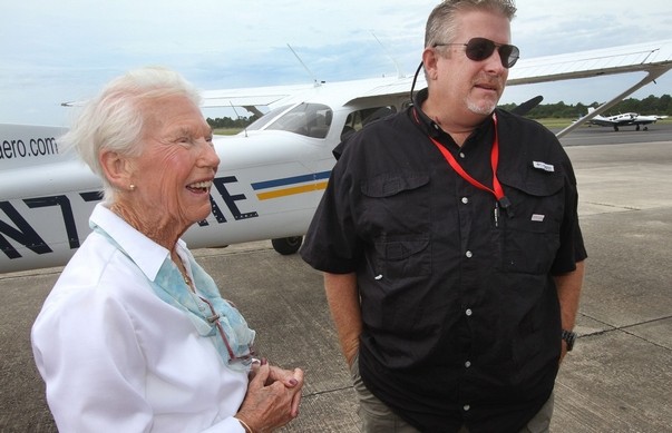 Acompanhada do instrutor Kurt Schneider (foto abaixo), com quem teve aulas nos últimos meses, a idosa inglesa decolou no dia 16, do aeroporto de Flagler, na Flórida, EUA, pilotando um Cessna.