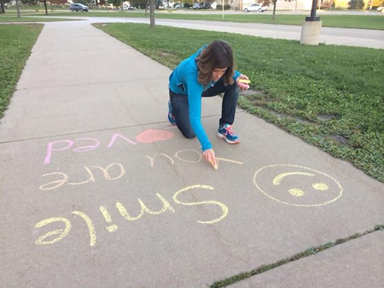 Mais de 40 escolas da cidade de Twins, nos EUA, espalharam a ideia de Nicki Brunne e deixaram as próprias mensagens agradáveis nas calçadas em torno dos colégios.