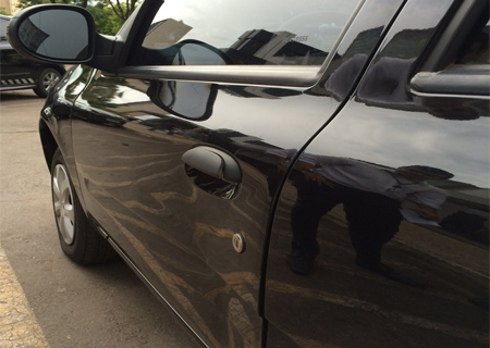 A batida, no meio da porta do motorista, danificou também a maçaneta.