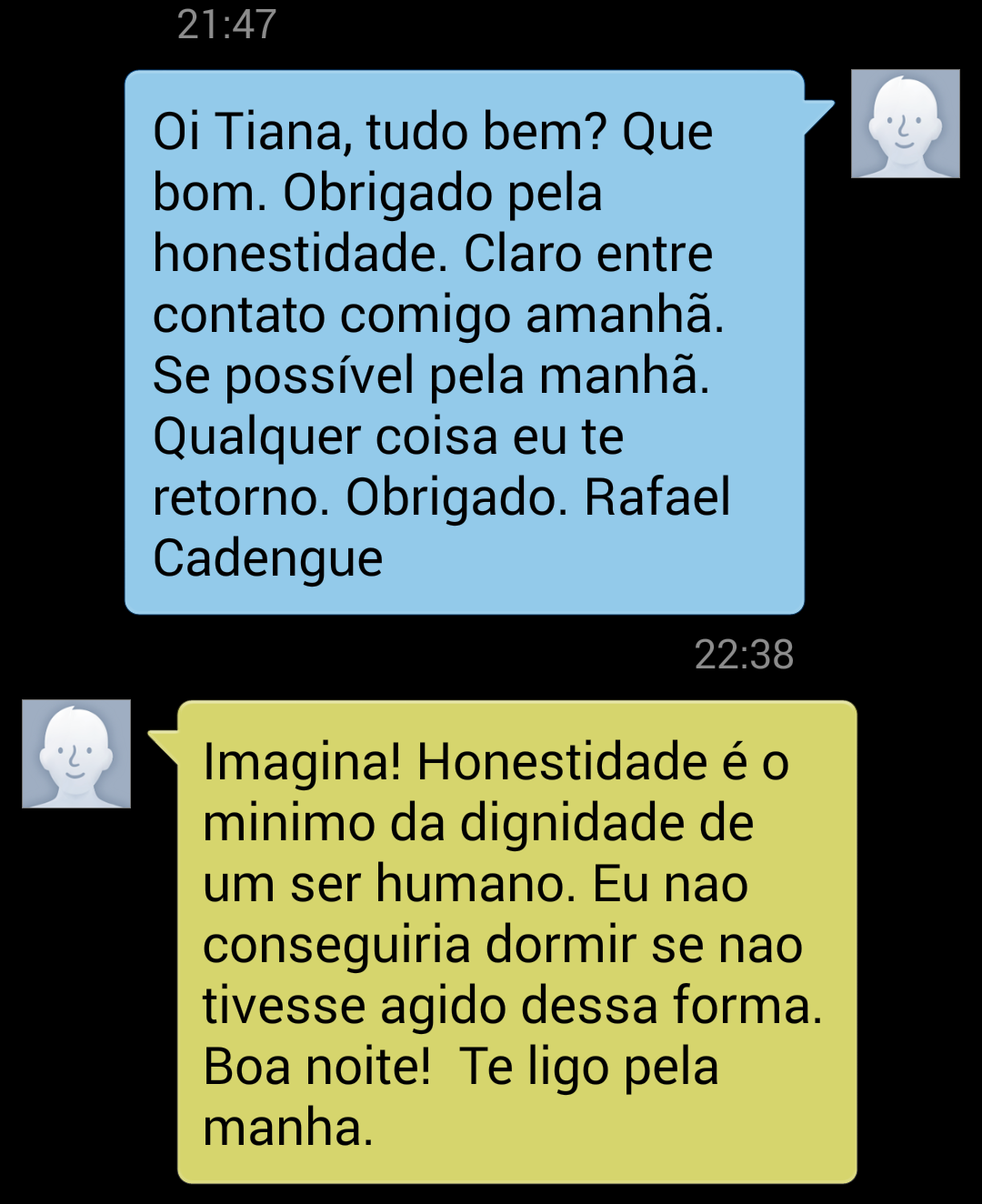 Meio sem acreditar em tanta honestidade, Rafael, que cansa de cobrir histórias de roubos, assaltos e violência, falou com a motorista pelo WhatsApp: