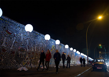 Os balões reproduzem 15 dos 156 quilômetros do percurso do muro construído em 1961 e derrubado em 1989.