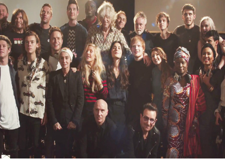 A nova versão conta com a presença de veteranos, como Bono Vox, do U2, que também estava na primeira gravação, além de novatos de sucesso, como Ed Sheeran, Ellie Goulding, Sam Smith, Chris Martin, Rita Ora e o grupo One Direction.