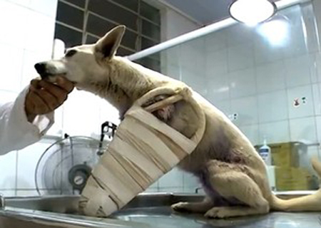 Ela foi encaminhada para uma clínica da cidade e deve passar por uma cirurgia.