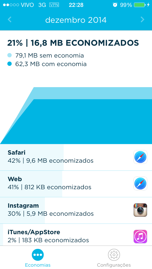 O Onavo também é bastante transparente em suas atividades e dá vários detalhes sobre a quantidade de dados que você usa em cada app, assim você sempre saberá onde os dados estão sendo consumidos.
