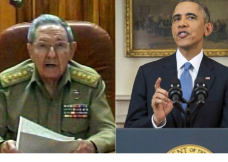 Barack Obama e Raúl Castro fizeram discursos simultâneos a respeito.