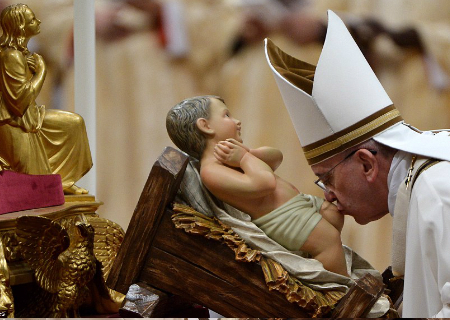 Francisco segurou a imagem do menino jesus na celebração do nascimento dele disse: