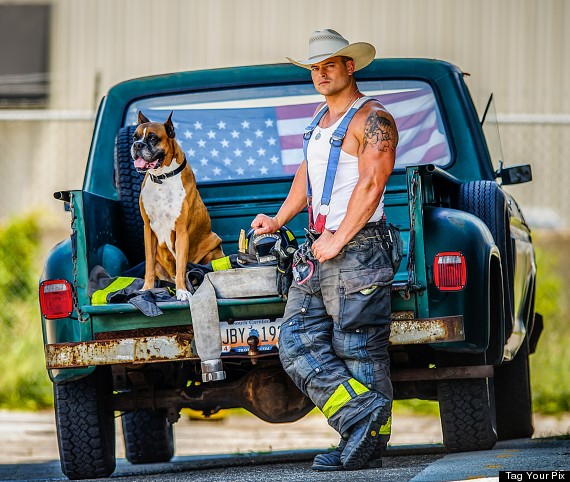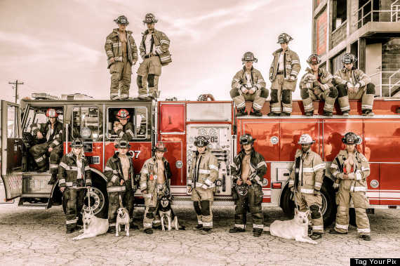 Bombeiros fortões posaram com animais bonitos para o Calendário beneficente de 2015.