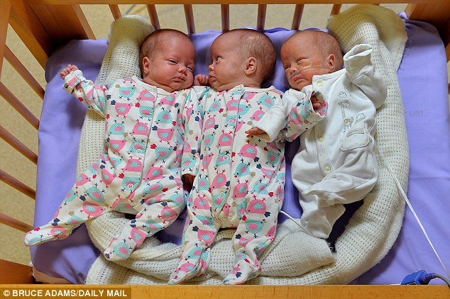 Eilah e Elsie, tal como a terceira bebê, Erin, nasceram saudáveis, com cerca de um quilo cada uma.